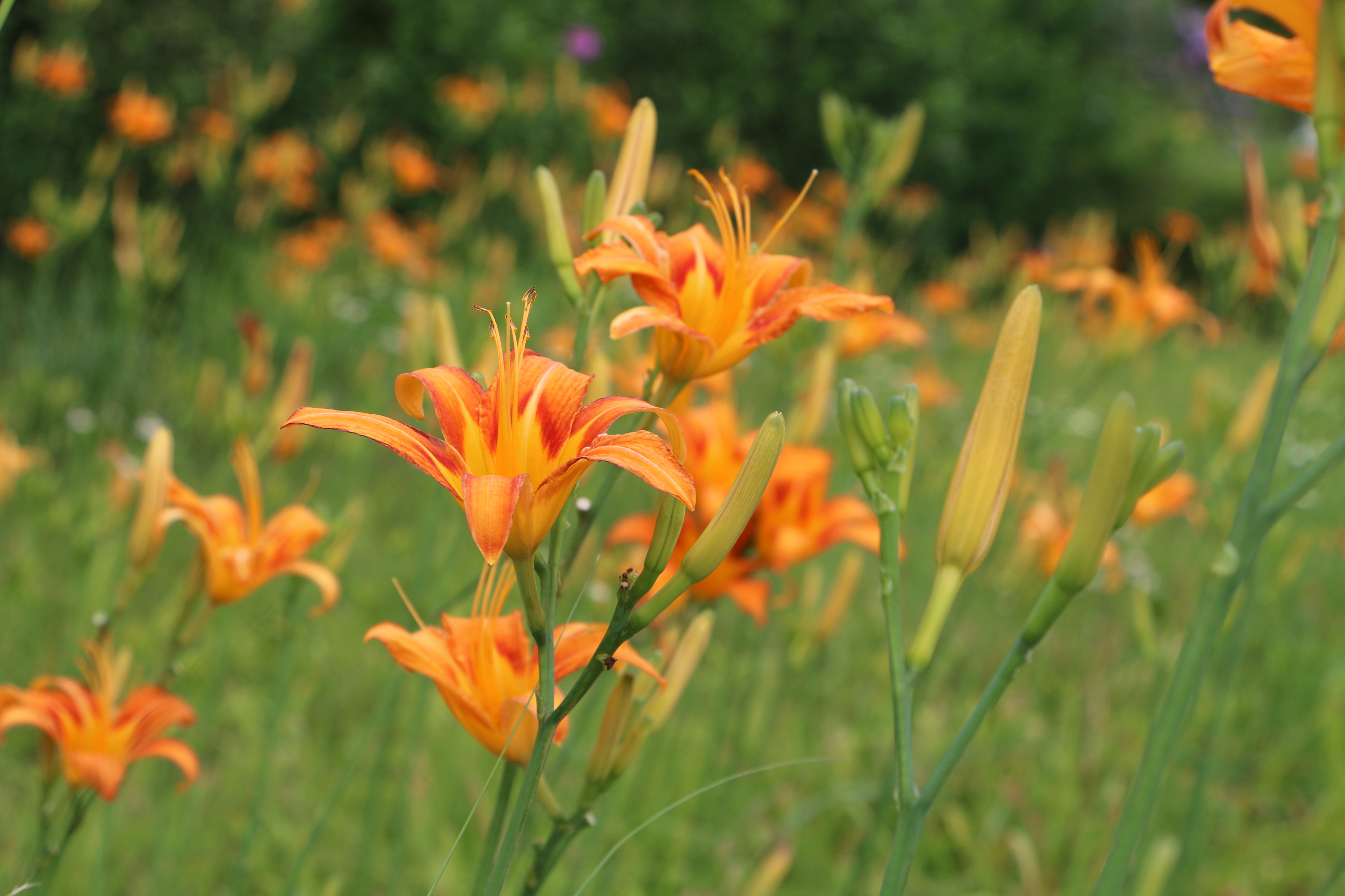 도심에서 가장 흔히 볼 수 있는 것은 꽃이 좀 크고 주황색 꽃이 피는 왕원추리다. 왕원추리는 6월 하순부터 피기 때문에 좀 있어야 볼 수 있다. 한강공원이나 도심 넓은 공터에 왕원추리를 대규모로 심어놓은 것을 볼 수 있다. 중국 원산으로 관상용으로 들여온 것이다. 전에는 홑꽃을 홑왕원추리, 겹꽃을 왕원추리로 구분했으나 10여년전 국가표준식물목록에서 홑왕원추리라는 이름이 사라졌다. 둘을 통합해 왕원추리라고 부르기로 한 것이다.