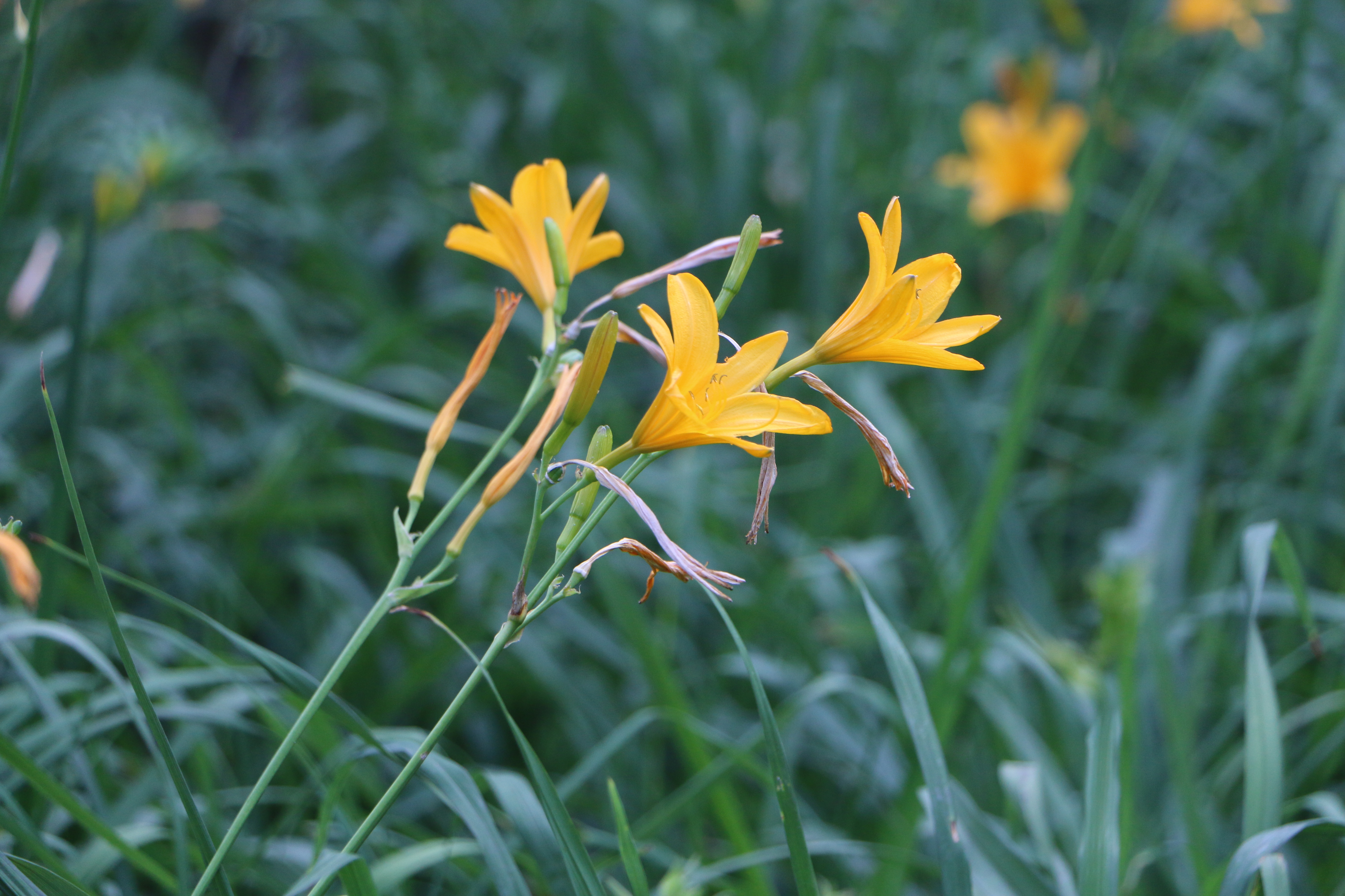 노랑원추리는 오후 늦게 꽃이 피고 다음날 오전에 진다. 그러니까 박꽃이나 달맞이꽃처럼 밤에 피는 꽃이다. 북한에선 저녁에 핀다고 저녁원추리라고 부른다. 그래서 노랑원추리를 담으려면 오후 5시쯤이 제일 좋다. 꽃은 피고 아직 해는 지지 않았을 때다. 아래 사진이 오후 5시쯤 담은 것이다.