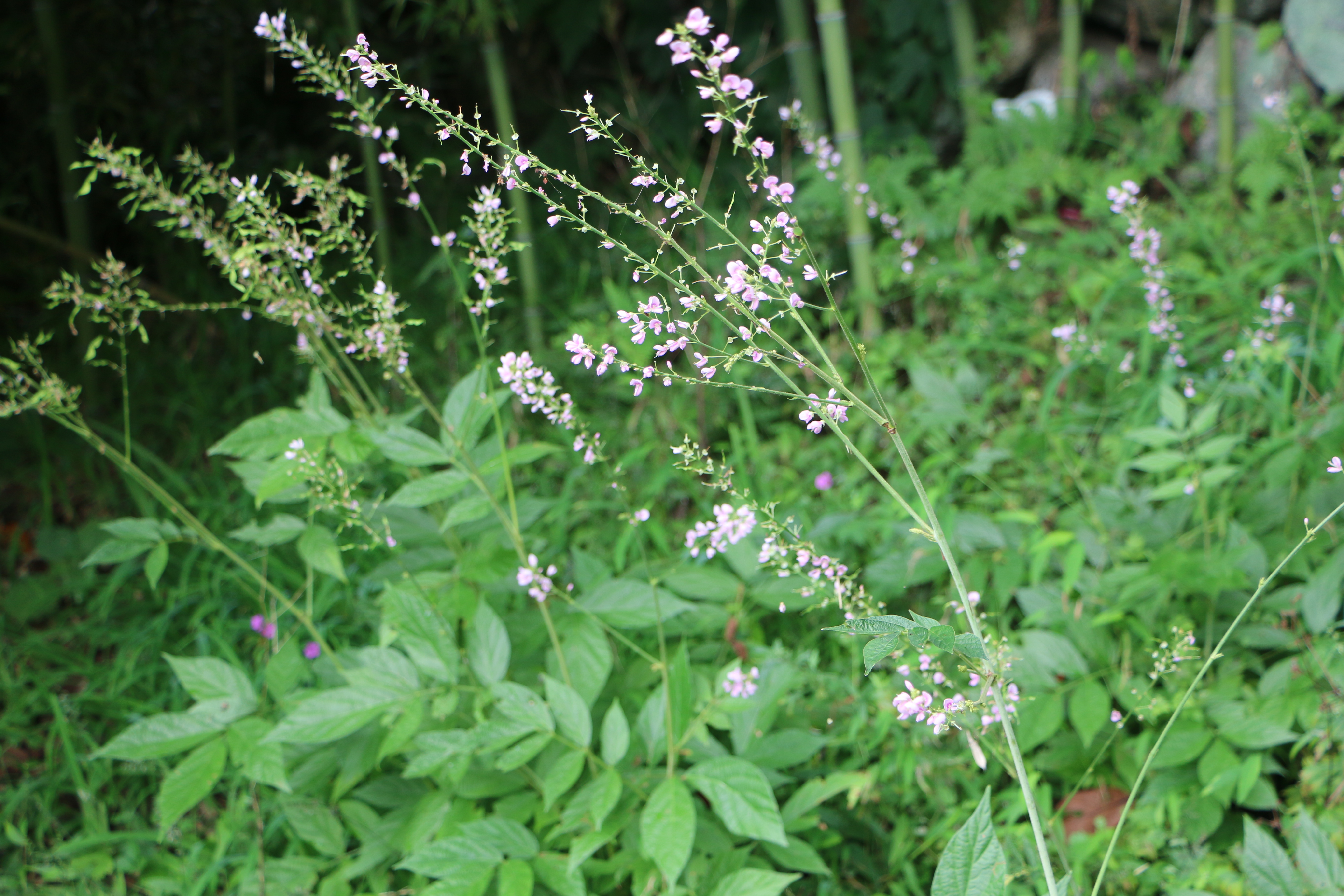 도둑놈의갈고리는 위아래 사진에서 보듯 작은 나비 모양의 꽃이 다닥다닥 피는 야생화입니다. 가늘고 긴 가지마다 세 장의 잎이 달립니다. 열매가 맺히기 전에는, 작긴 하지만 그런대로 예쁜 꽃이 피고 잎도 콩잎(이 식물은 콩과 식물이다)처럼 평범하게 생겼는데 왜 이름이 이 모양인지 이해하기 어렵습니다.